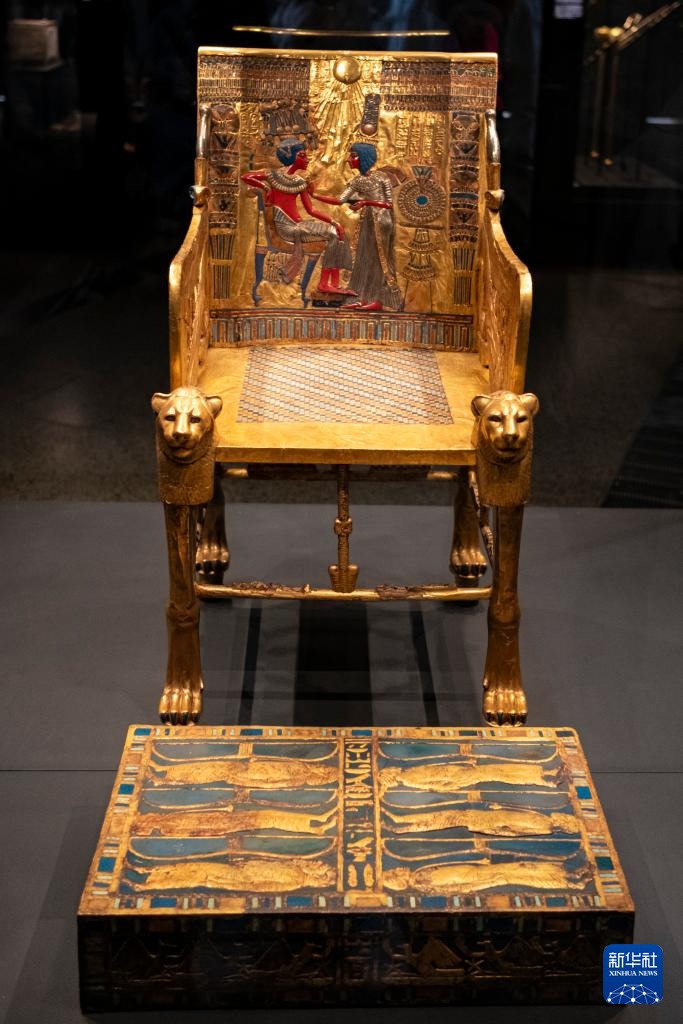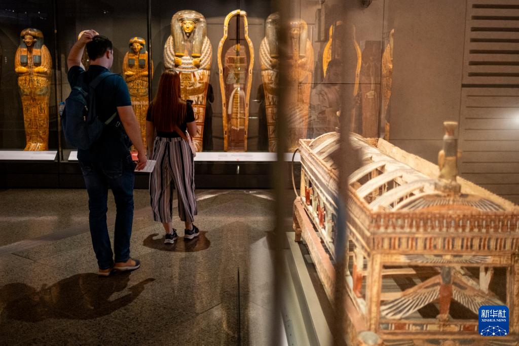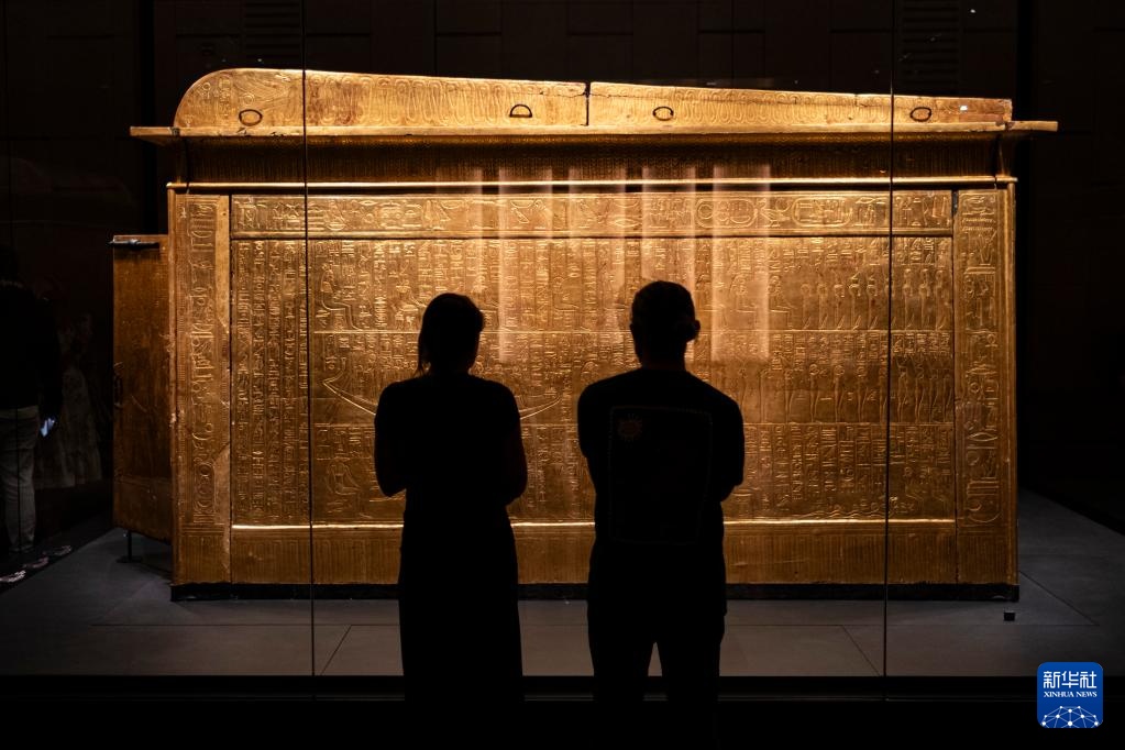 12月20日,游客在埃及吉萨的大埃及博物馆观赏法老图坦卡蒙的神龛。新华社记者 辛梦晨 摄