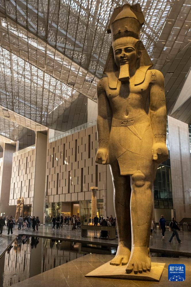 这是12月20日在埃及吉萨的大埃及博物馆拍摄的法老拉美西斯二世巨像。新华社记者 辛梦晨 摄