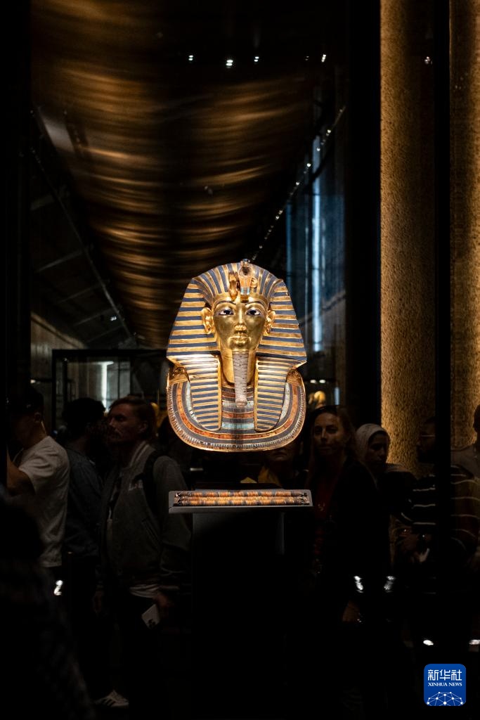 这是12月20日在埃及吉萨的大埃及博物馆拍摄的法老图坦卡蒙的黄金面具。新华社记者 辛梦晨 摄
